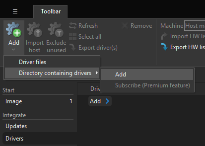 Driversin the left pane, thenAdd→Directory containing drivers→Add🖼️ and open the extracted Driver Pack folder. 🖼️ - Once the drivers have been added, click on