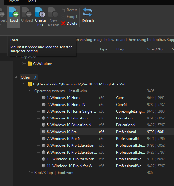 Applyin the left pane. Here you’ll want to configure the options as seen here: Save the image, remove all other editions from install.wim, WIM image format, and Create ISO (you can choose any name you want for it). 🖼️ - Click on